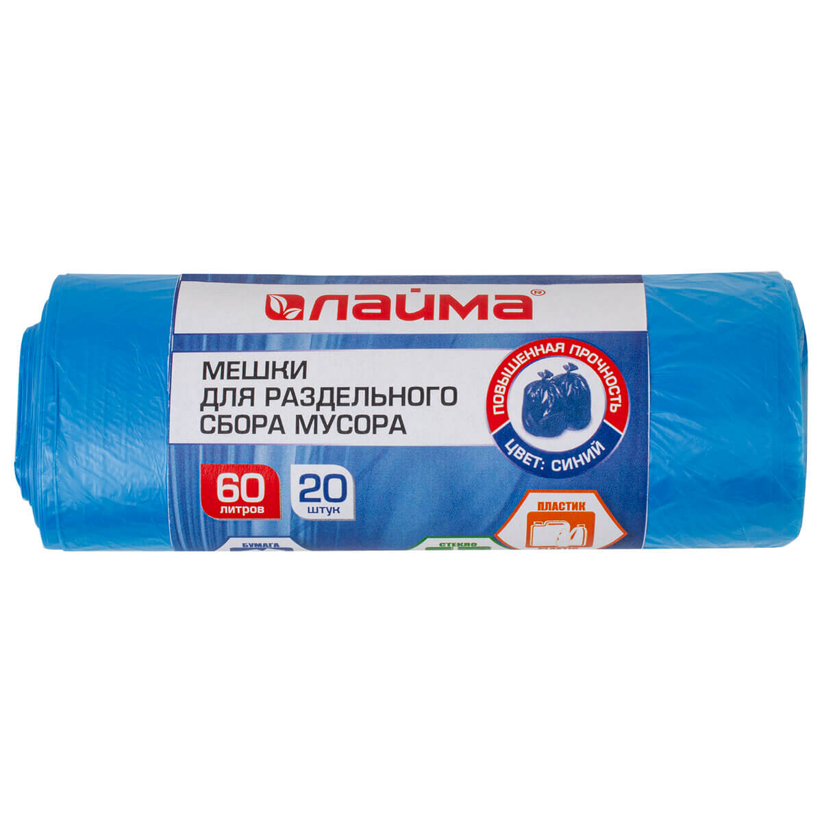 Мешки для мусора 60 л, синие, в рулоне 20 шт., ПНД, 10 мкм, 680х580 мм, LAIMA, 606703