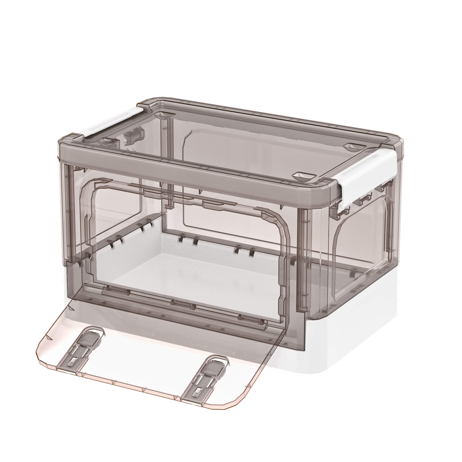 Функциональный пластиковый складной ящик сочетает в себе элегантный дизайн, удобство и прочность. Прозрачные стенки с теплым коричневым оттенком создают стильный внешний вид и позволяют легко видеть содержимое, а белое дно добавляет аккуратности. Пластиковый контейнер идеально подходит для хранения одежды, игрушек, документов, бытовых принадлежностей и мелочей.