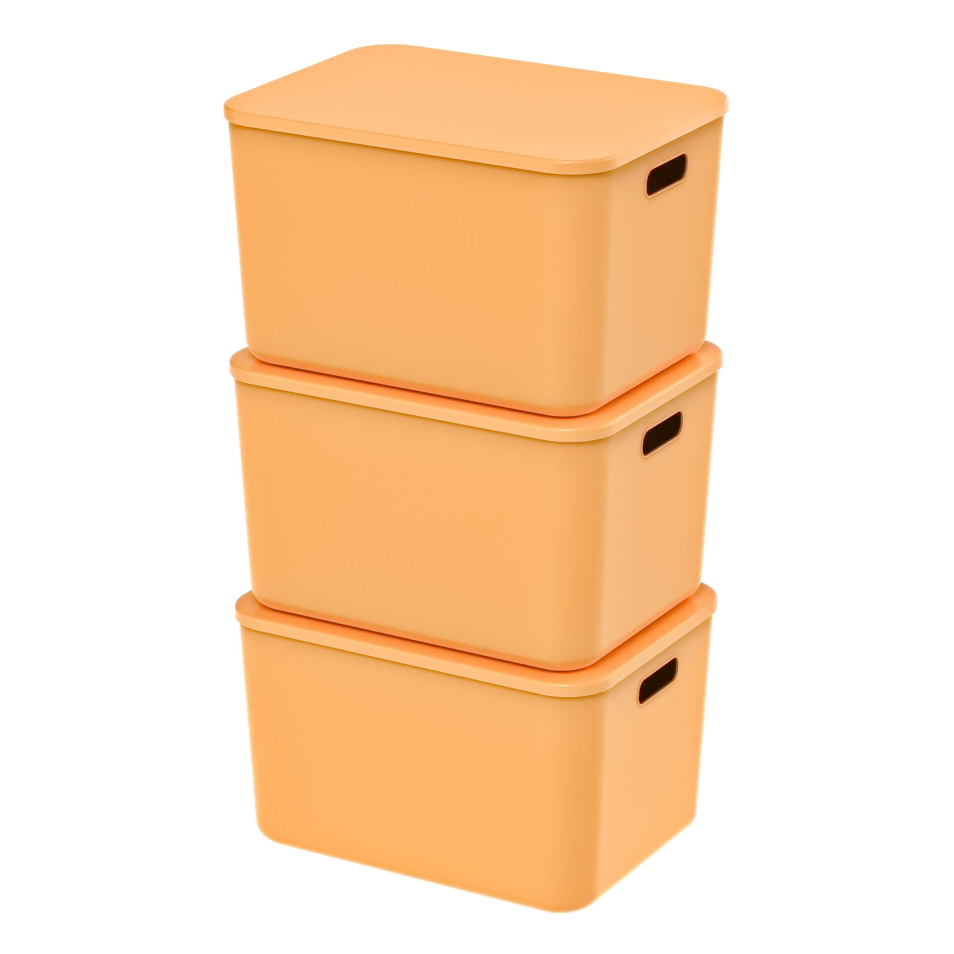 Ящик пластиковый вкладываемый 410х305х245 мм, желтый, с крышкой – удобство и яркость в одном решении