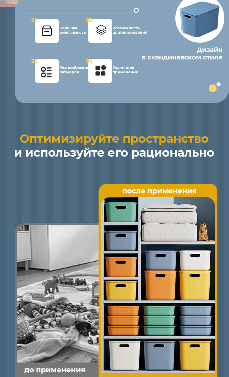 Подходит для хранения одежды, игрушек, документов и других предметов. Используйте пластиковый контейнер дома, в офисе или на складе.