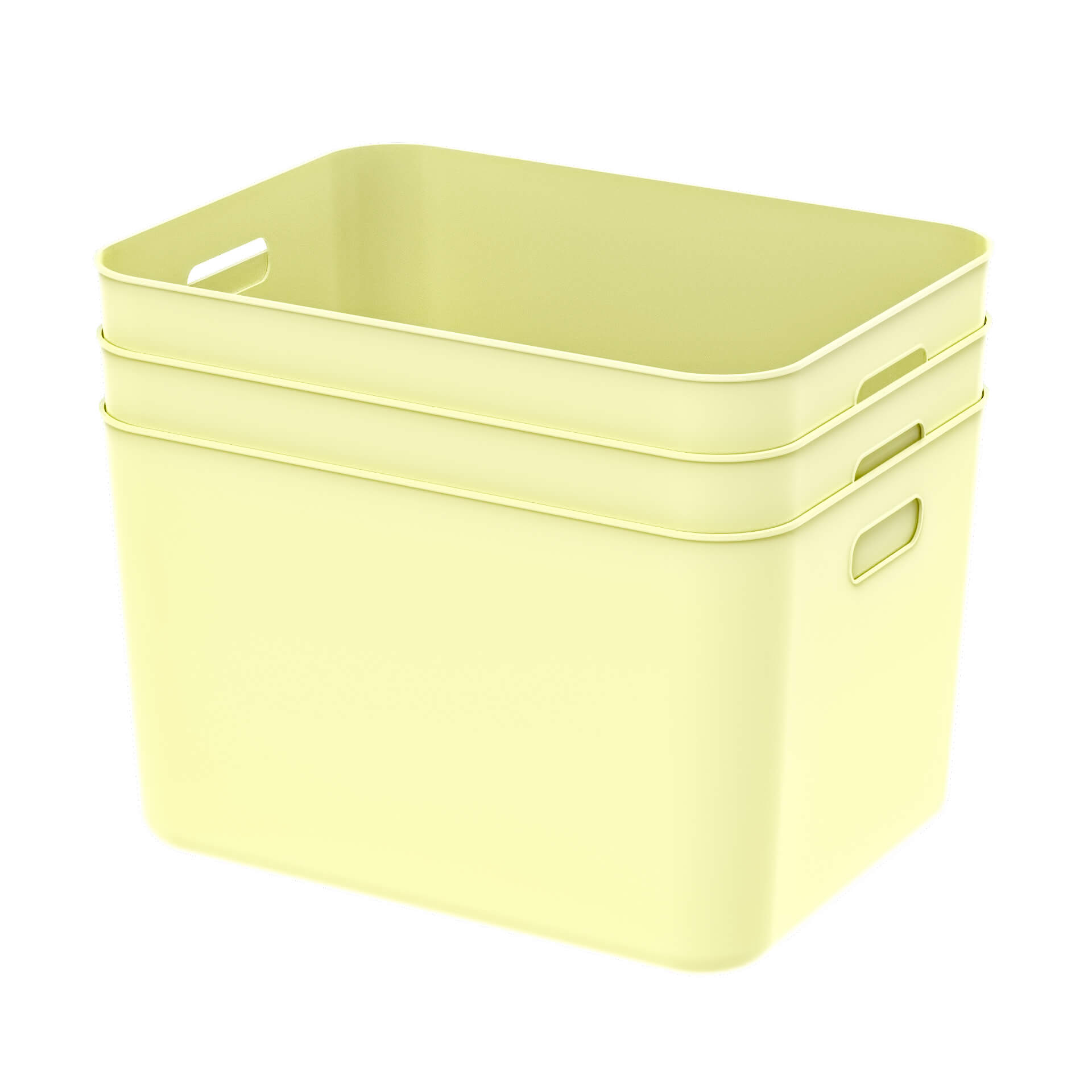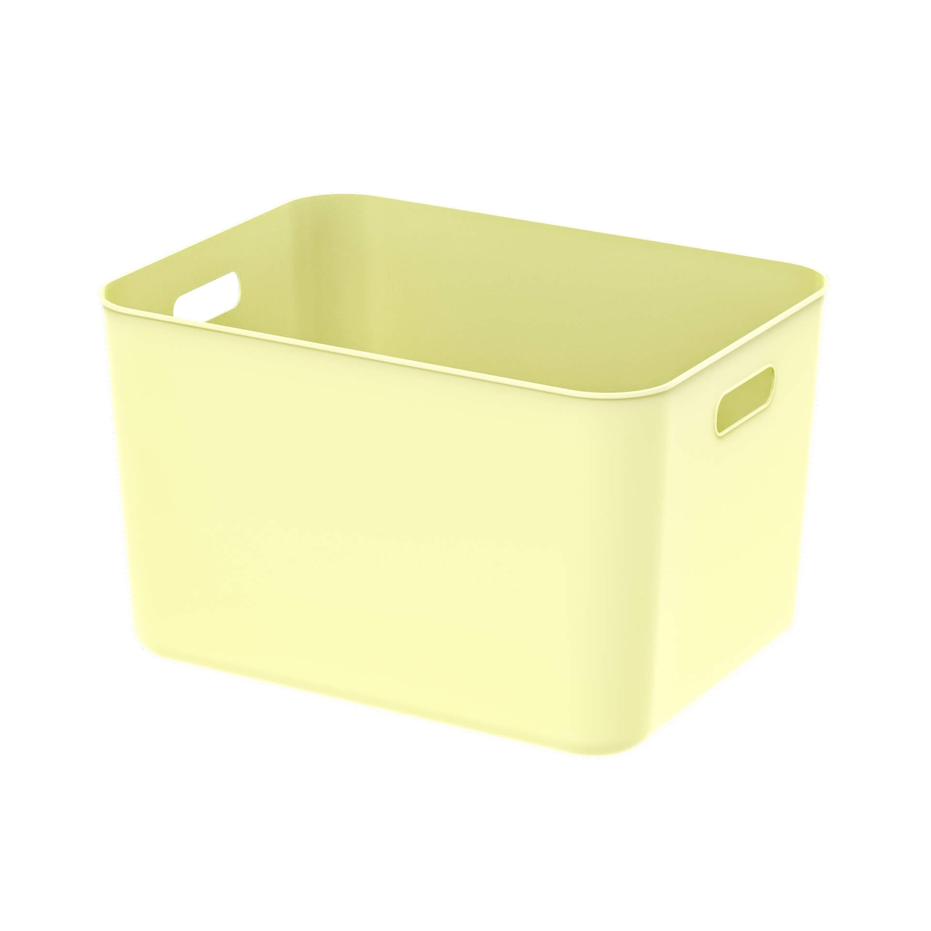 Этот пластиковый ящик для хранения отличается стильным дизайном и высокой функциональностью. Светло-желтый цвет придает интерьеру свежесть, а вкладываемая конструкция позволяет хранить пустые ящики, экономя пространство.