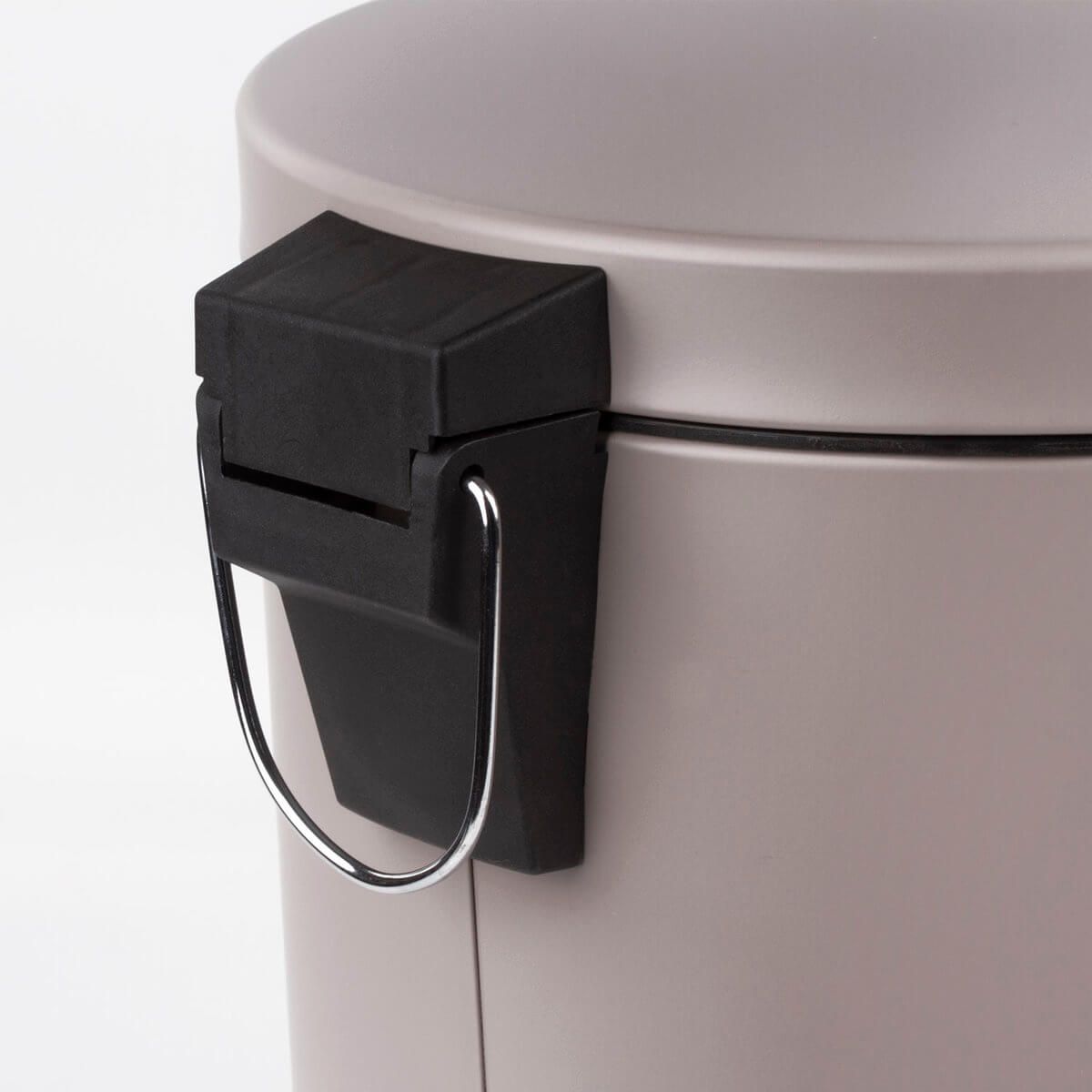 Внутреннее съемное ведро из прочного пластика снабжено удобной рукояткой для легкости выноса мусора. Изготовленное из нержавеющей стали с антикоррозийным покрытием, оно гарантирует долгий срок службы. Прочная конструкция с антискользящим основанием обеспечивает надежность в использовании.
