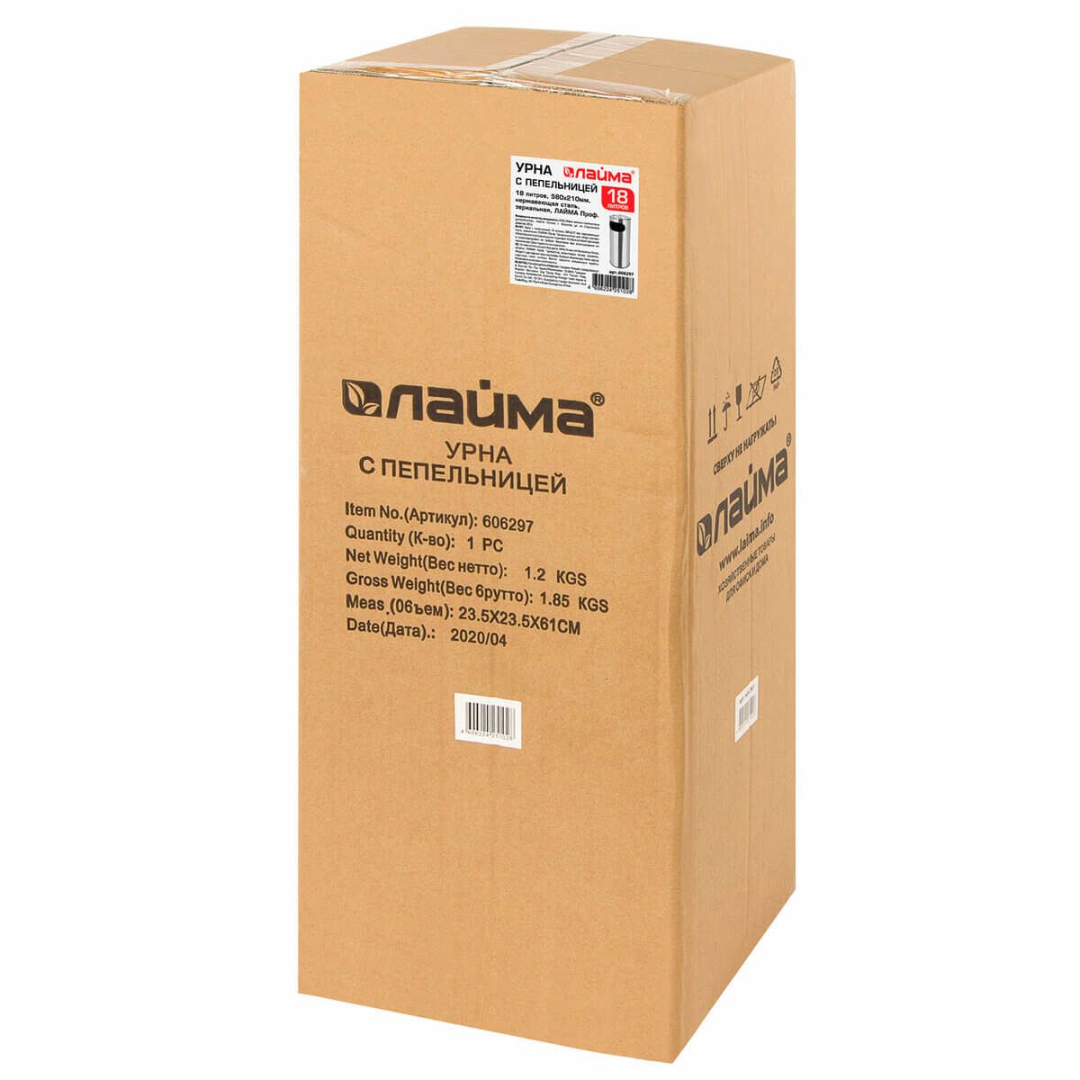Урна с пепельницей 18 литров, нержавеющая сталь, зеркальная, LAIMA PROFESSIONAL в Астрахани